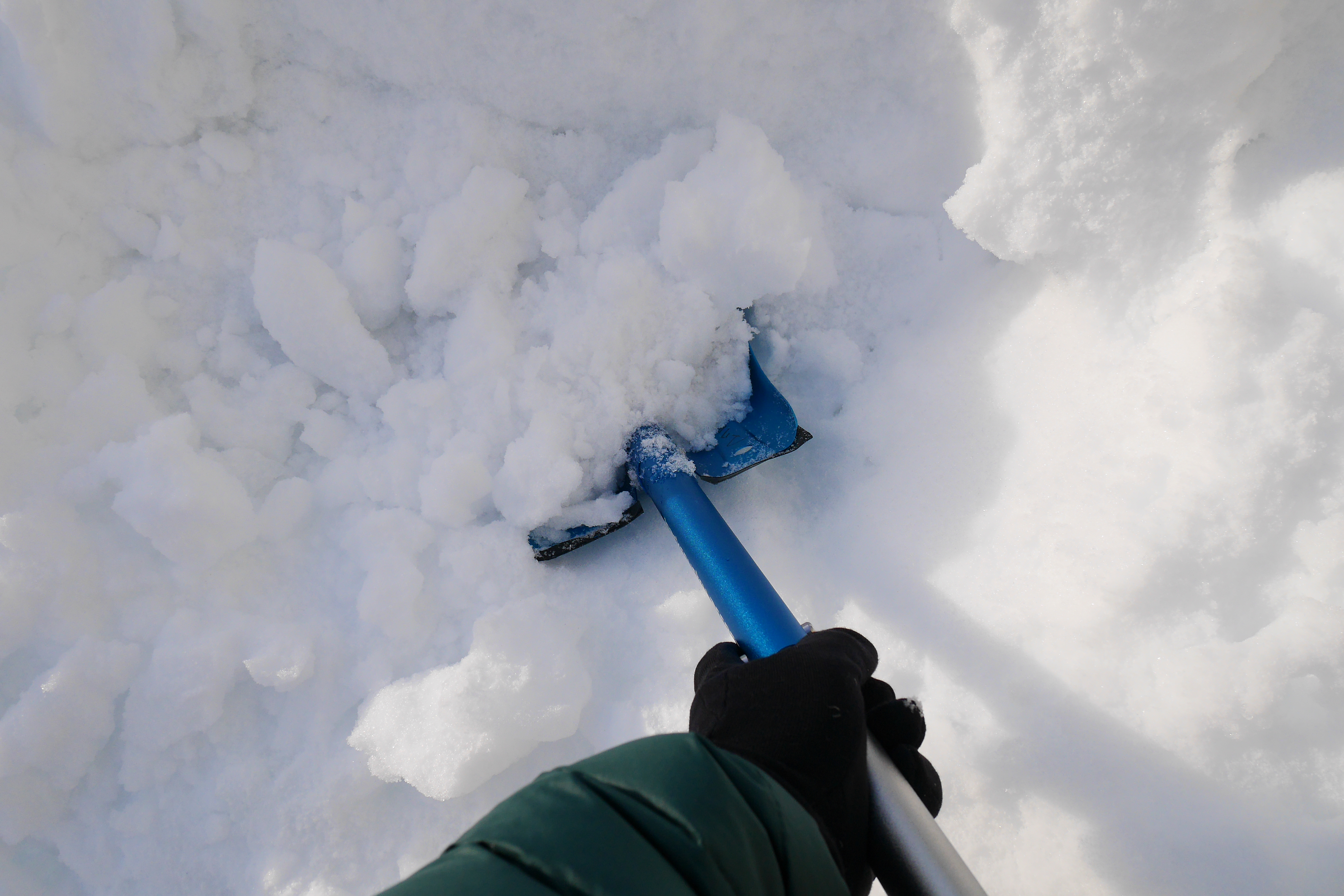 デブリの末端は硬く締まった雪の塊となりシャベルでなければ掘ることは出来ない
