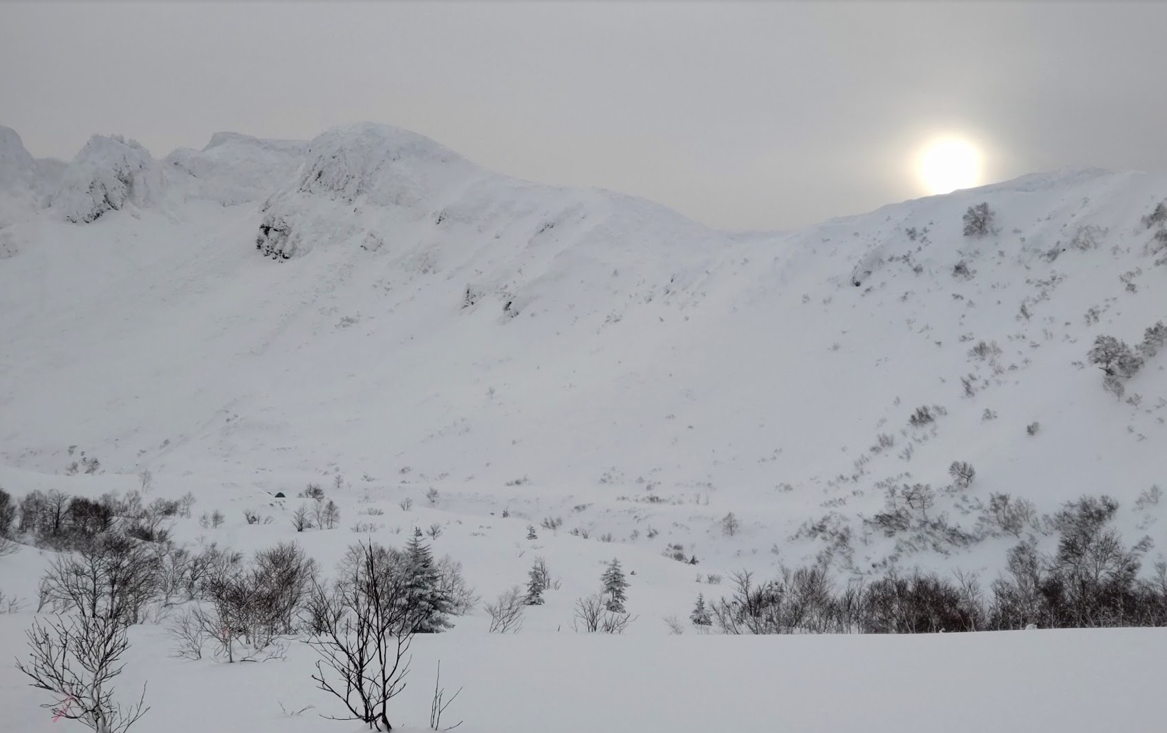 クラブ定例のカミホロ雪上訓練がいつものように実施されたが、二日目午後より超大型の低気圧がやって来るとの予報が出ていた。13日風もなく薄曇り空だが気温は十勝岳温泉駐車場でマイナス16℃とかなり低い。