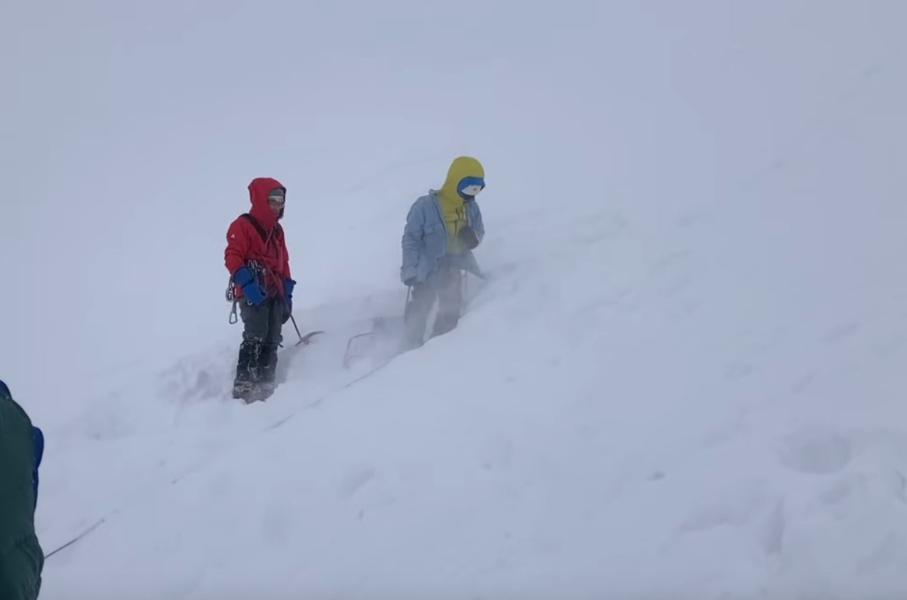 14日、安政火口にて若者は人影のあるルンゼから頂上を目指した
