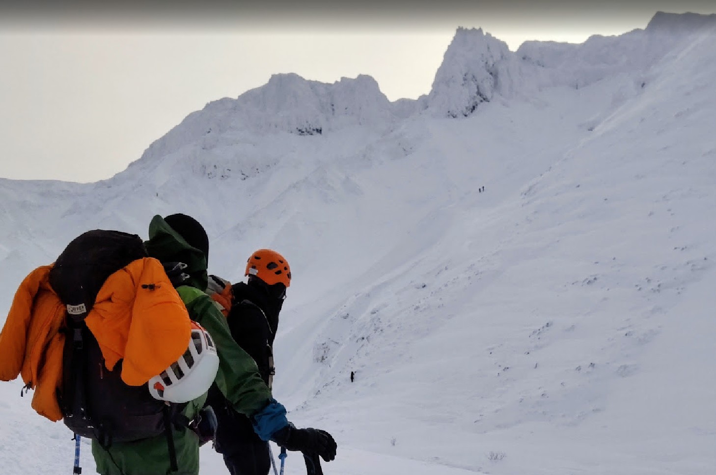 しばれる天候下で、7時間休みなしの訓練であったが得られたものは大きい。次の日、上富良野岳へと向かったものの、疲れと、手術後の痛み、不整脈、凍傷の後遺と老人4名はあえなく安政火口でリタイア。若者(50代だが)二名が下降ルンゼからD尾根経由でピークに登り、白銀荘の温泉でリラックスして待機している老人に合流。シーズンのスタートとなった。
