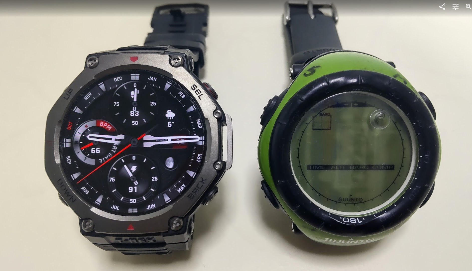 ガーミンやスント、アップルウォッチなどは定番で性能も高いが価格が5万円を楽に超えて8万円に至る。山で使う時計はボロクソになる可能性が高いのでなるべく安く買いたい。しかし、せっかく買うのであれば最新のものが欲しいという条件には無理があった。でも根気よく探しているとメルカリでAmazfit