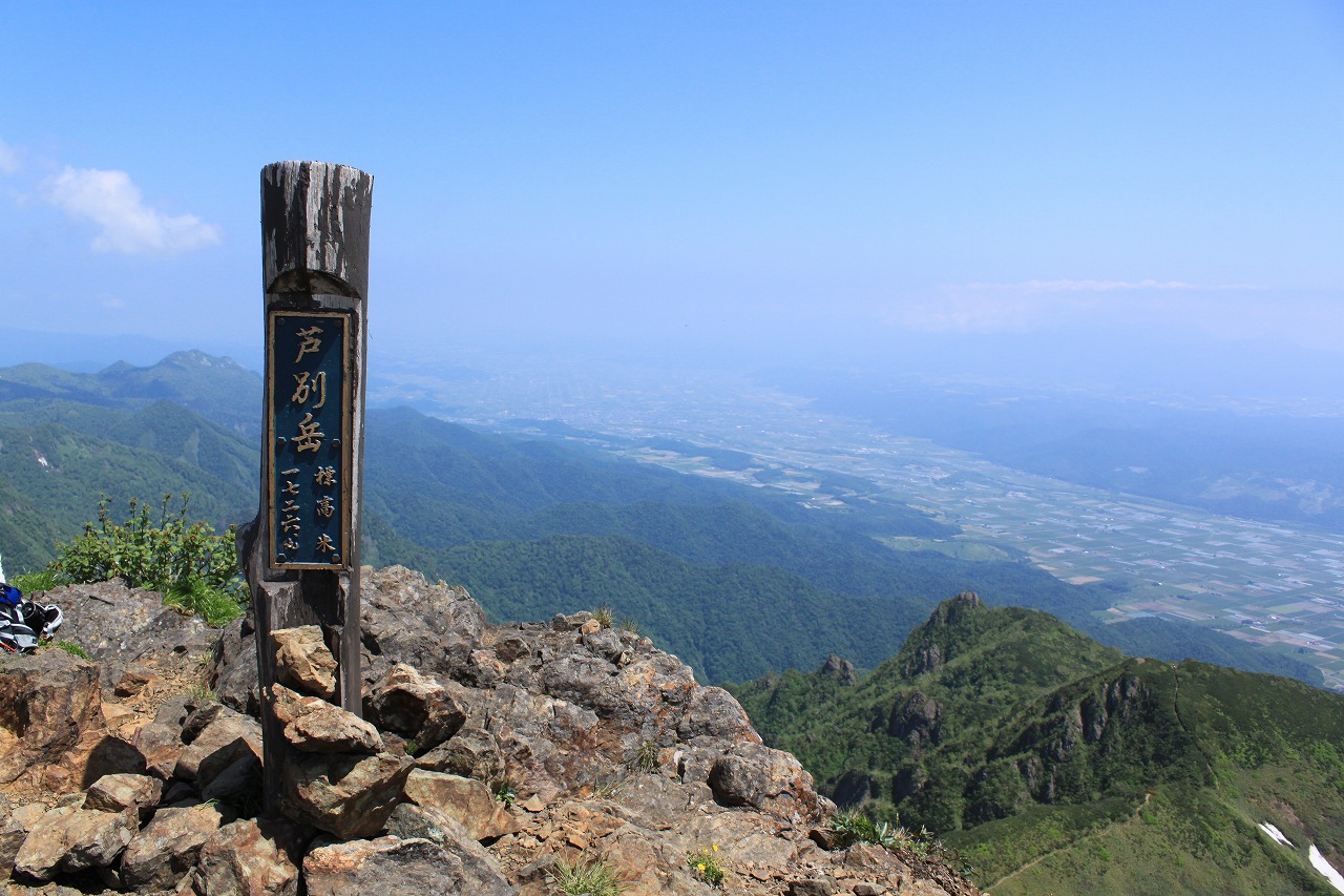 10:34芦別岳頂上到着。6時間24分は早くも遅くもないが出来れば6時間を切りたかったが、贅沢というものだろう。今の自分にとって厳しい登山道でしたがしかし、天気も良く、風もなく最高の登山日和。しばし360度の展望を楽しんだ。
